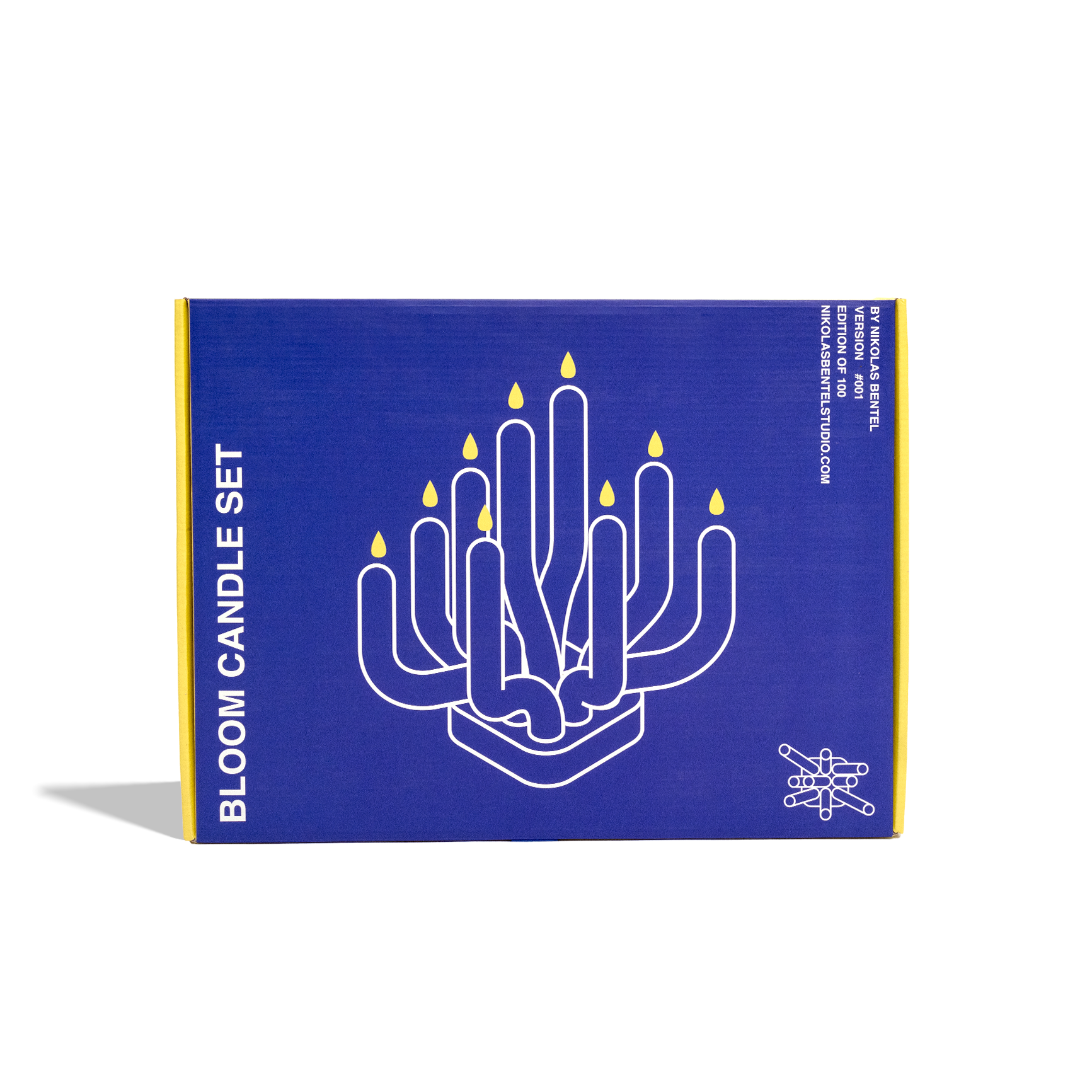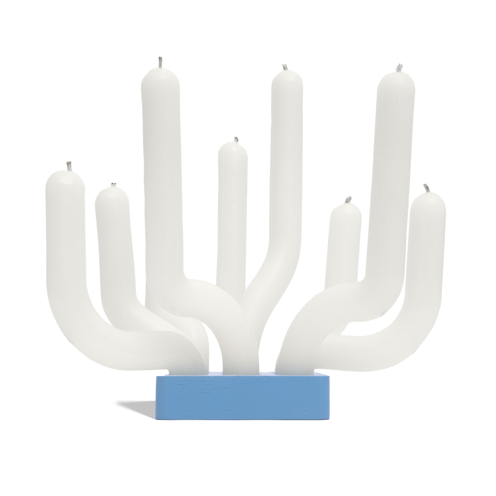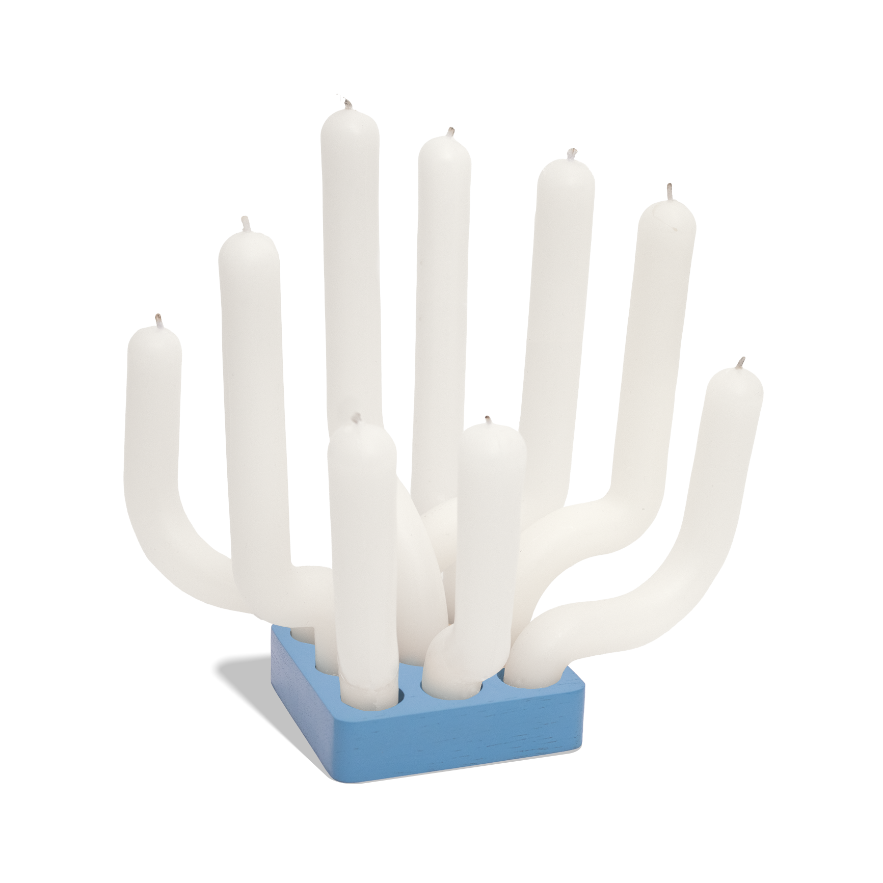 A limited edition candelabra inspired by blooming flora. Now with a painted blue wood base.