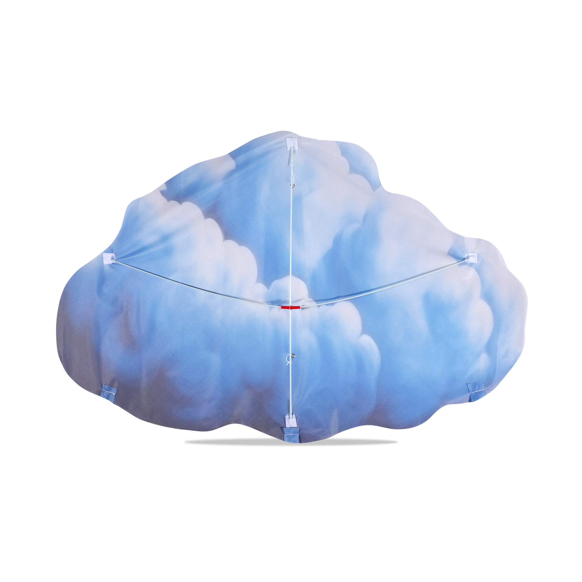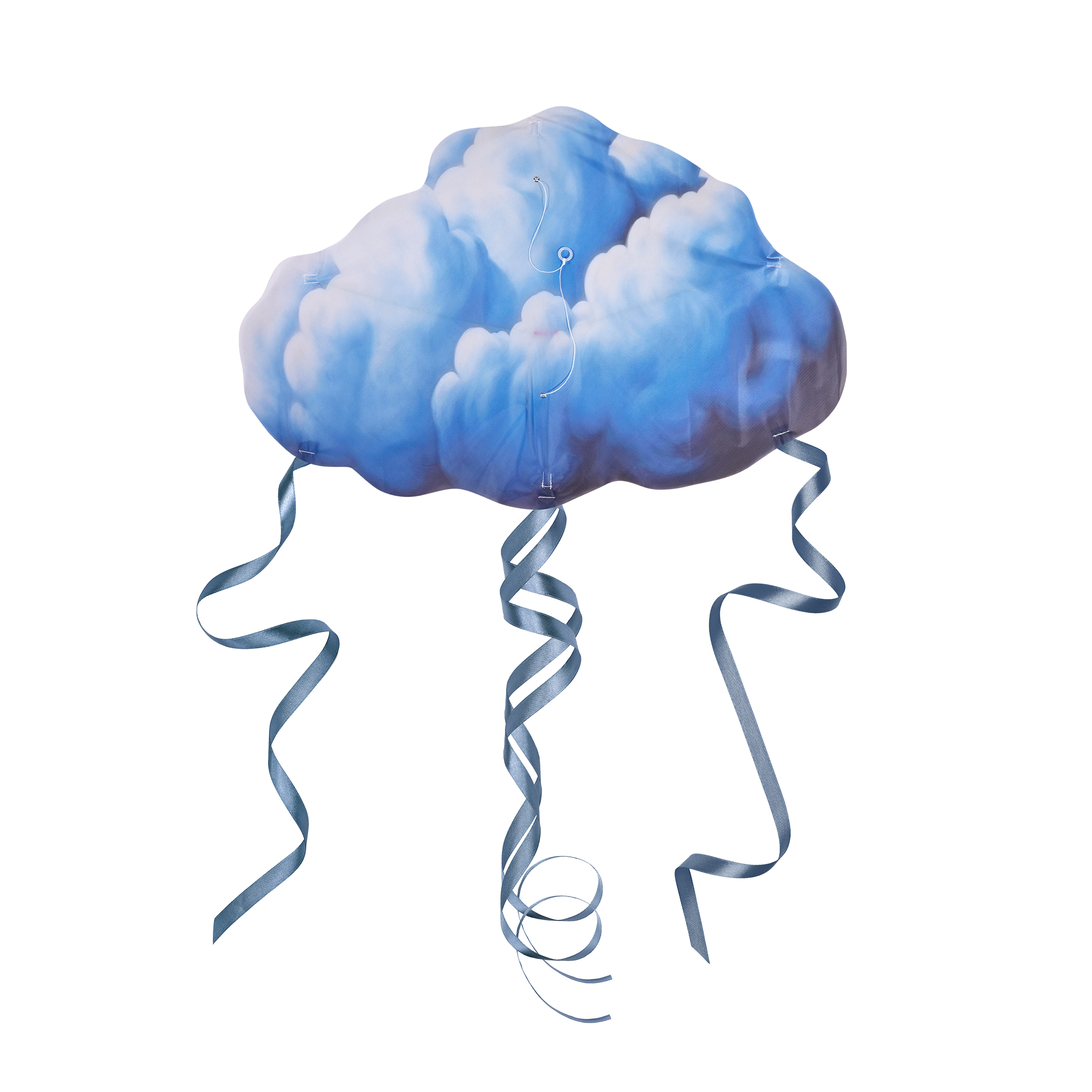 A cloud-shaped kite with four wispy tassels, perfect for floating in the wind.