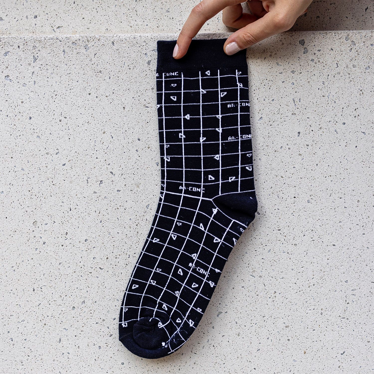 A pair of socks inspired by your favorite concrete texture. One size fits all.